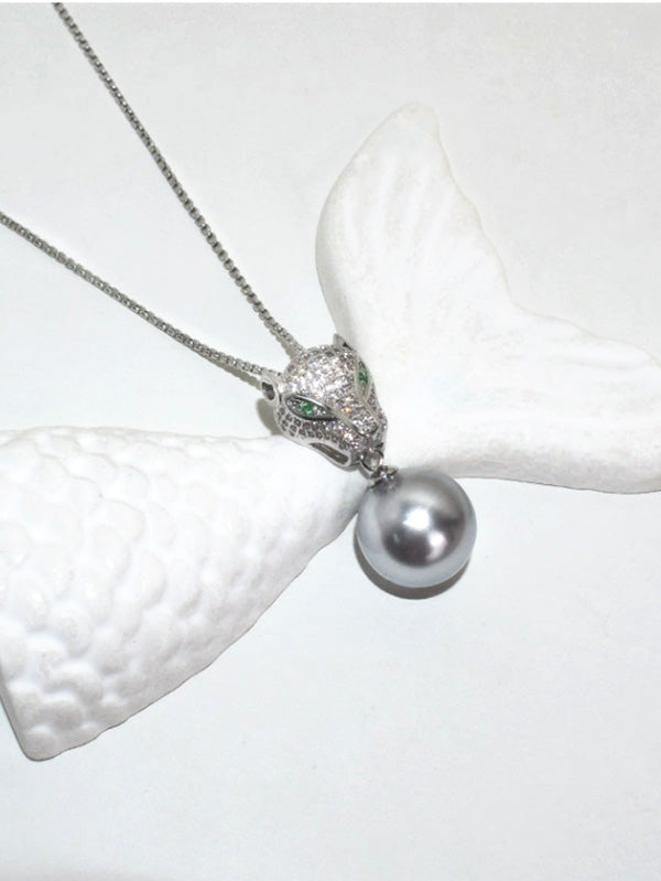 This elegant necklace features a unique design with a leopard head and pearl pendant, creating a striking encounter of the wild and the refined. Exquisitely crafted, this accessory adds a touch of sophistication to any outfit. Elevate your style with this one-of-a-kind piece.