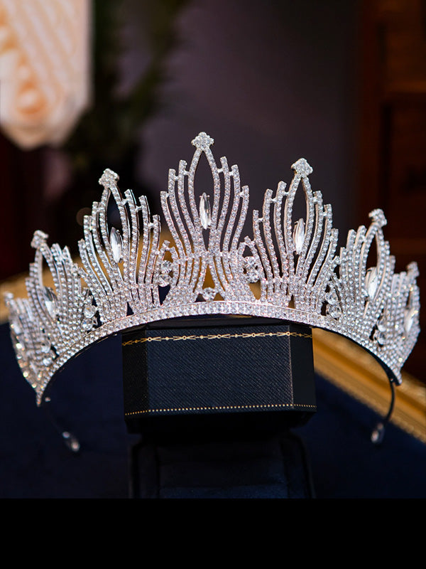 Gothic Rhodium-Plated Crystal Tiara - Victorian Era Inspired Bridal Headdress No.14